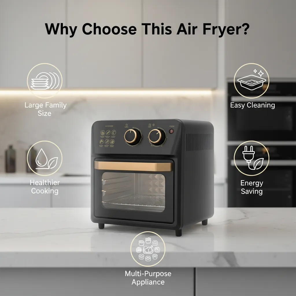 This extra-large air fryer lets you enjoy crispy meals using little to no oil, making it ideal for families and diet-friendly cooking.