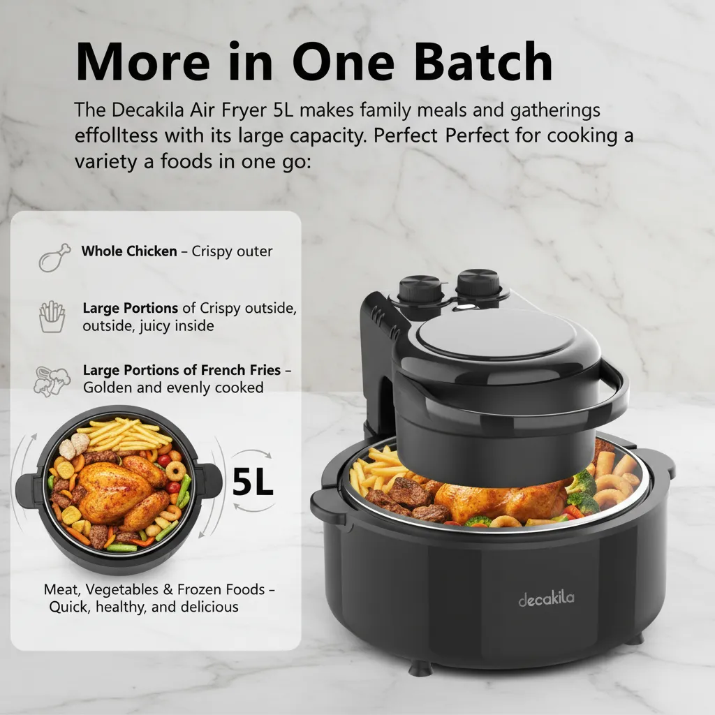 With its 5-liter capacity, the Decakila Air Fryer is perfect for families and gatherings. It can easily handle: