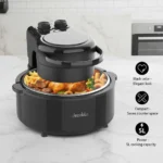 Its practical size ensures it doesn’t take up unnecessary counter space while still offering large cooking capacity.