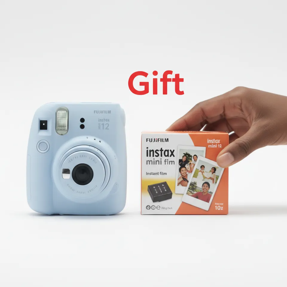 The Fujifilm Instax Mini 12 is a fun, stylish, and easy-to-use instant camera designed to capture life’s special moments and print them instantly. With automatic exposure control, built-in flash, and a dedicated selfie mode, this camera is perfect for beginners, daily use, travel, parties, and gifts 🎁.