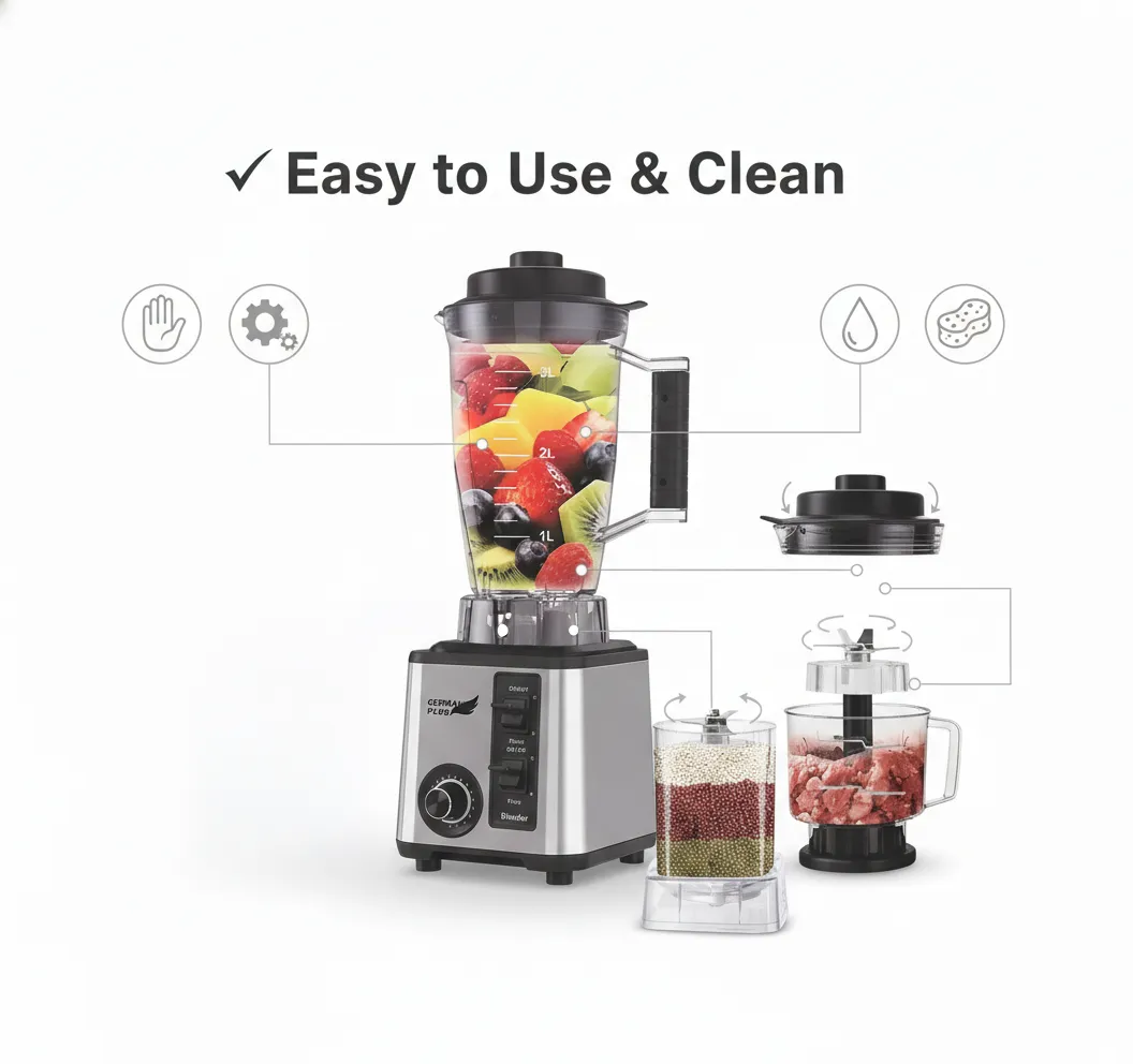 Upgrade your kitchen experience with the German Plus Multifunction Blender, designed to deliver powerful performance, versatility, and convenience in one compact appliance. Perfect for everyday use and large families.
