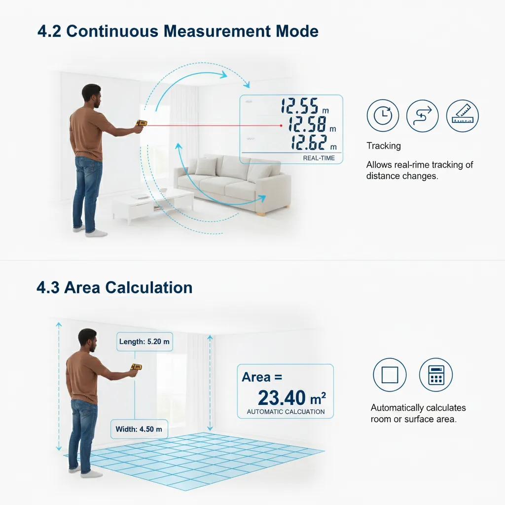 Automatically calculates room or surface area.