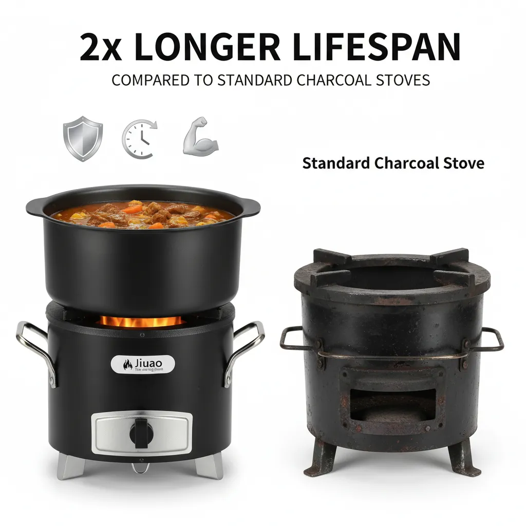 • Durability: 2× longer lifespan than standard charcoal stoves