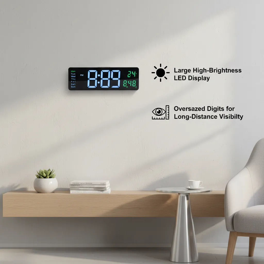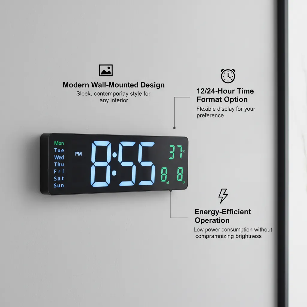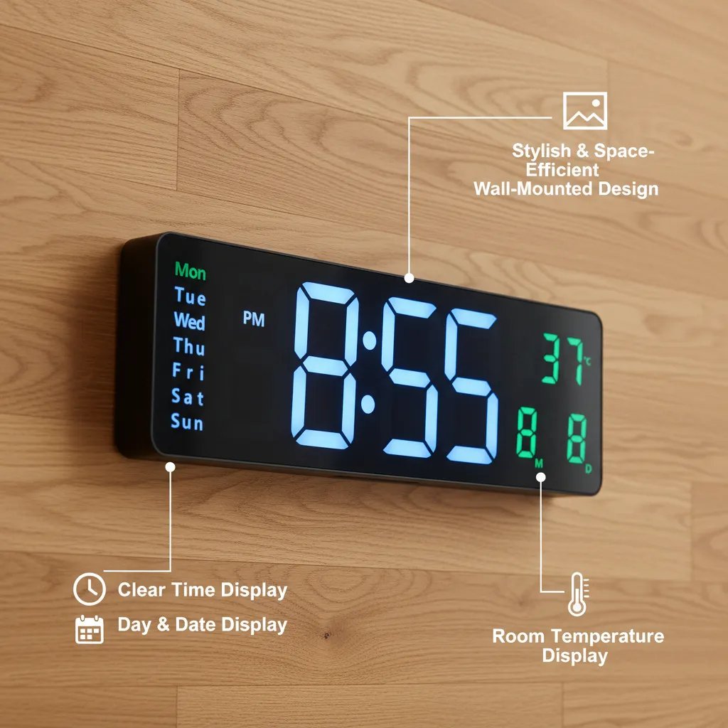This clock is perfect for users looking for a stylish, easy-to-read, and space-efficient wall-mounted digital clock.