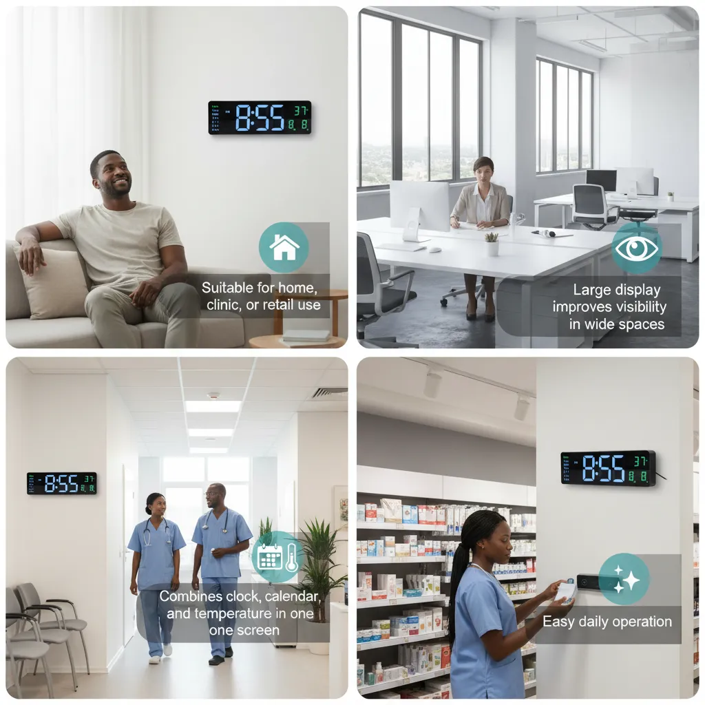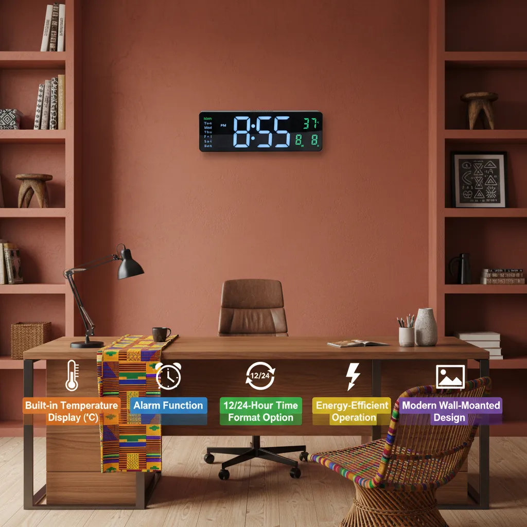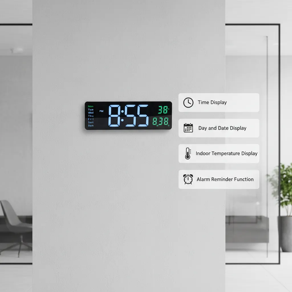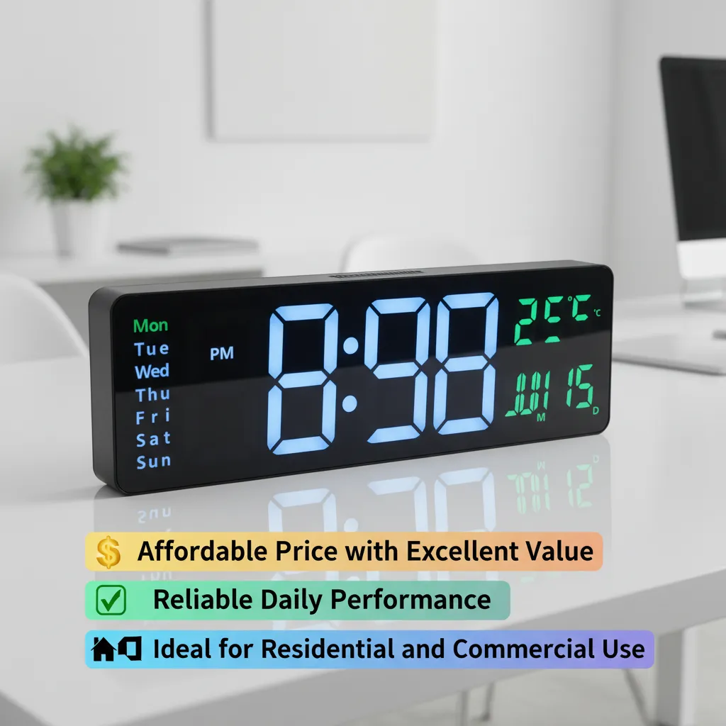 This clock is perfect for users looking for a stylish, easy-to-read, and space-efficient wall-mounted digital clock.