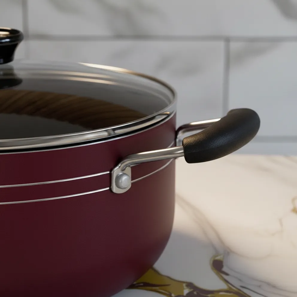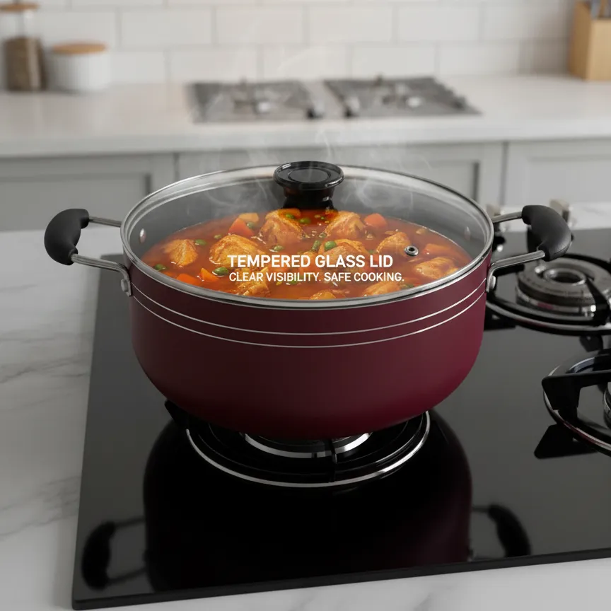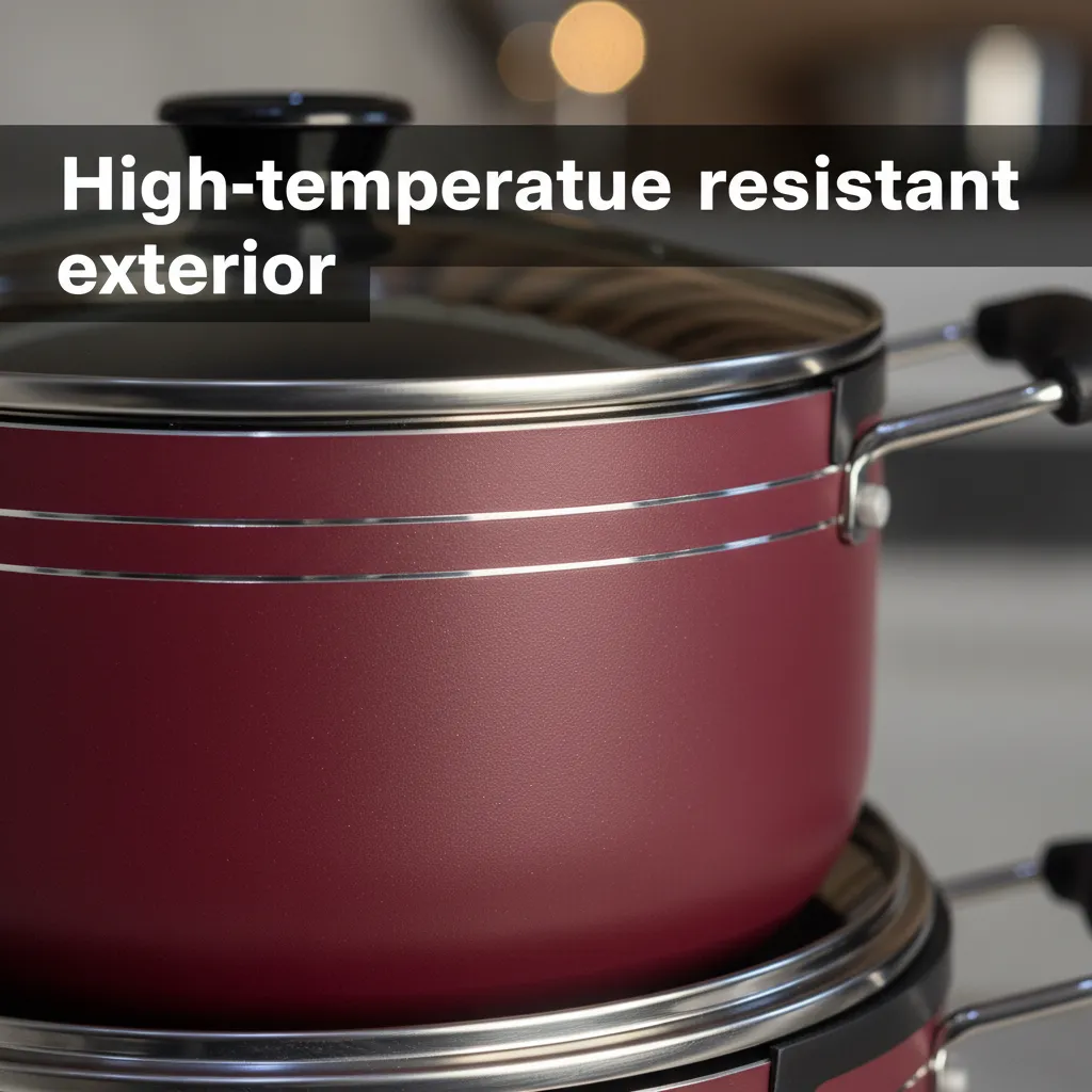 Each piece comes with a tempered glass lid for clear cooking visibility, and heat-resistant handles for safe, comfortable handling. The high-temperature-resistant exterior keeps your cookware looking vibrant and strong, even after daily use.