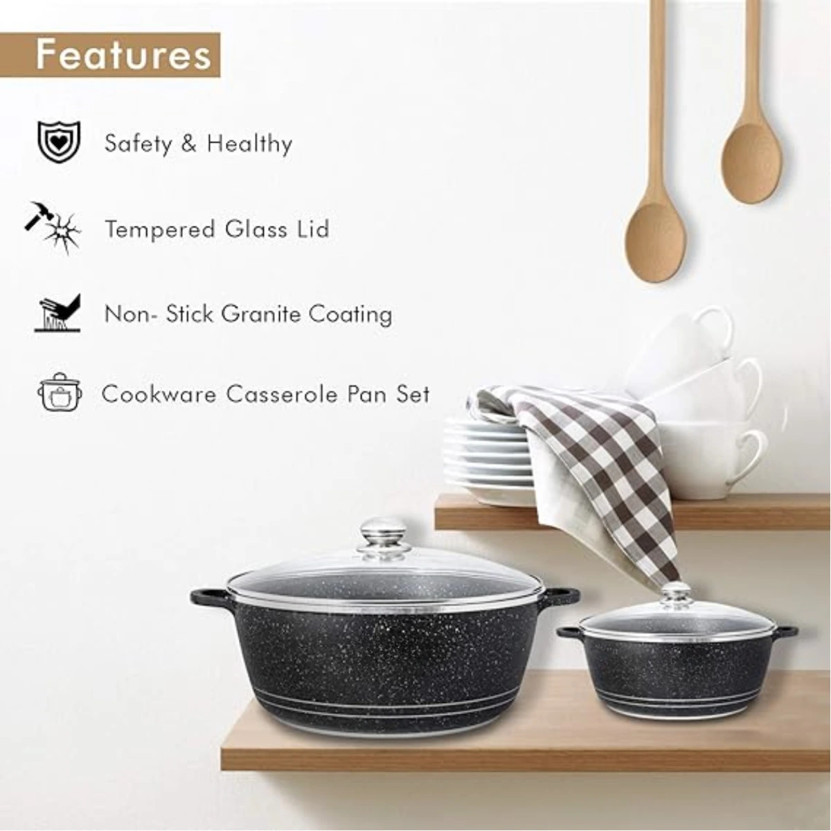 ✅ Premium Granite Coating: Nonstick surface allows healthier cooking with less oil and easy cleanup.