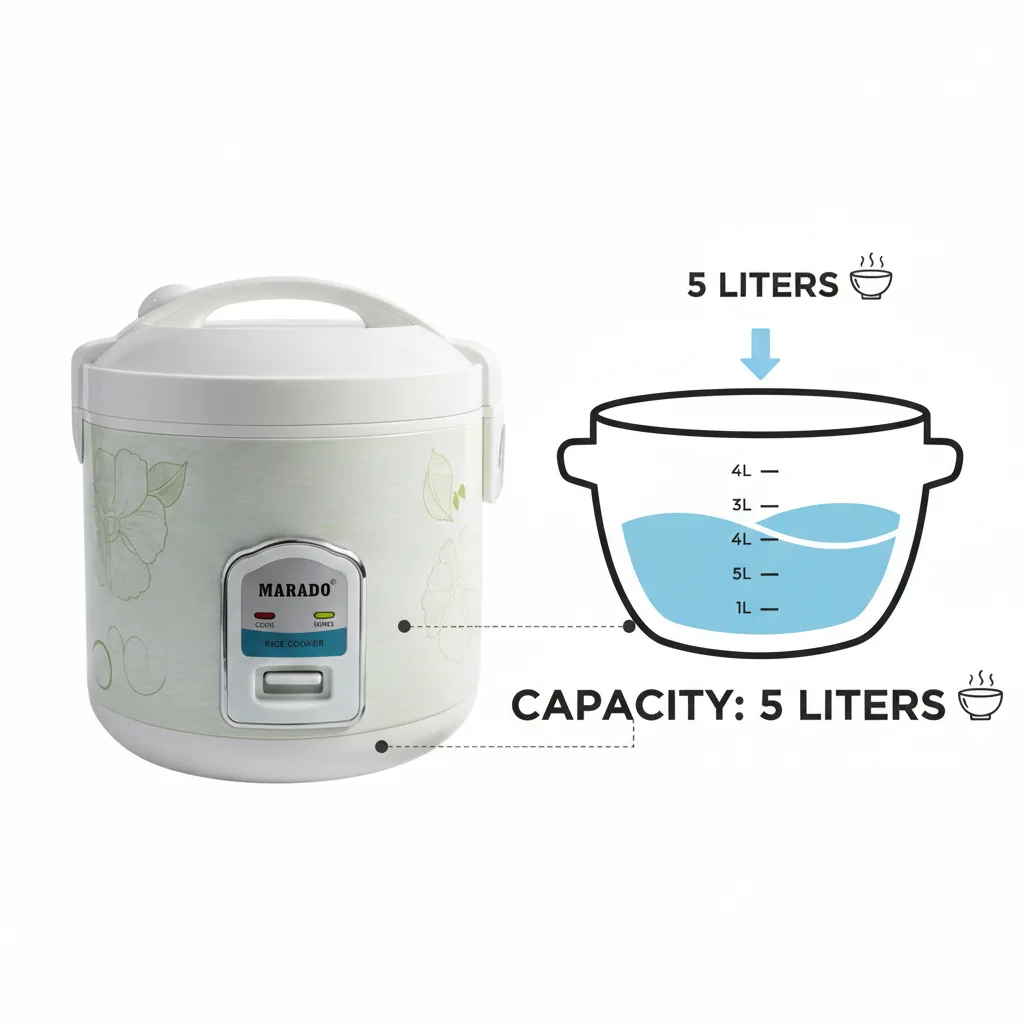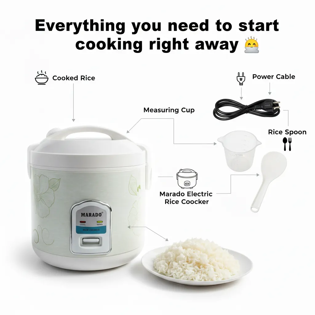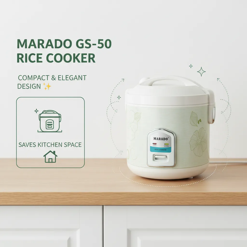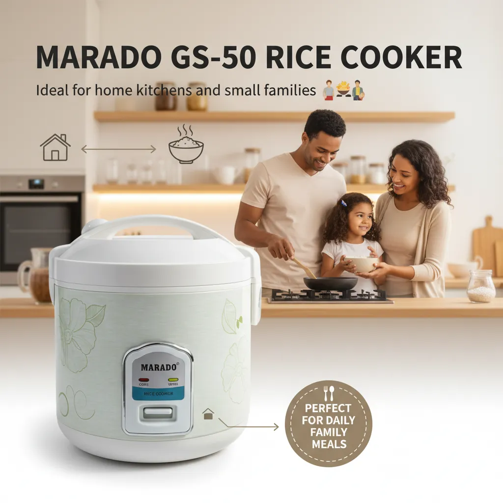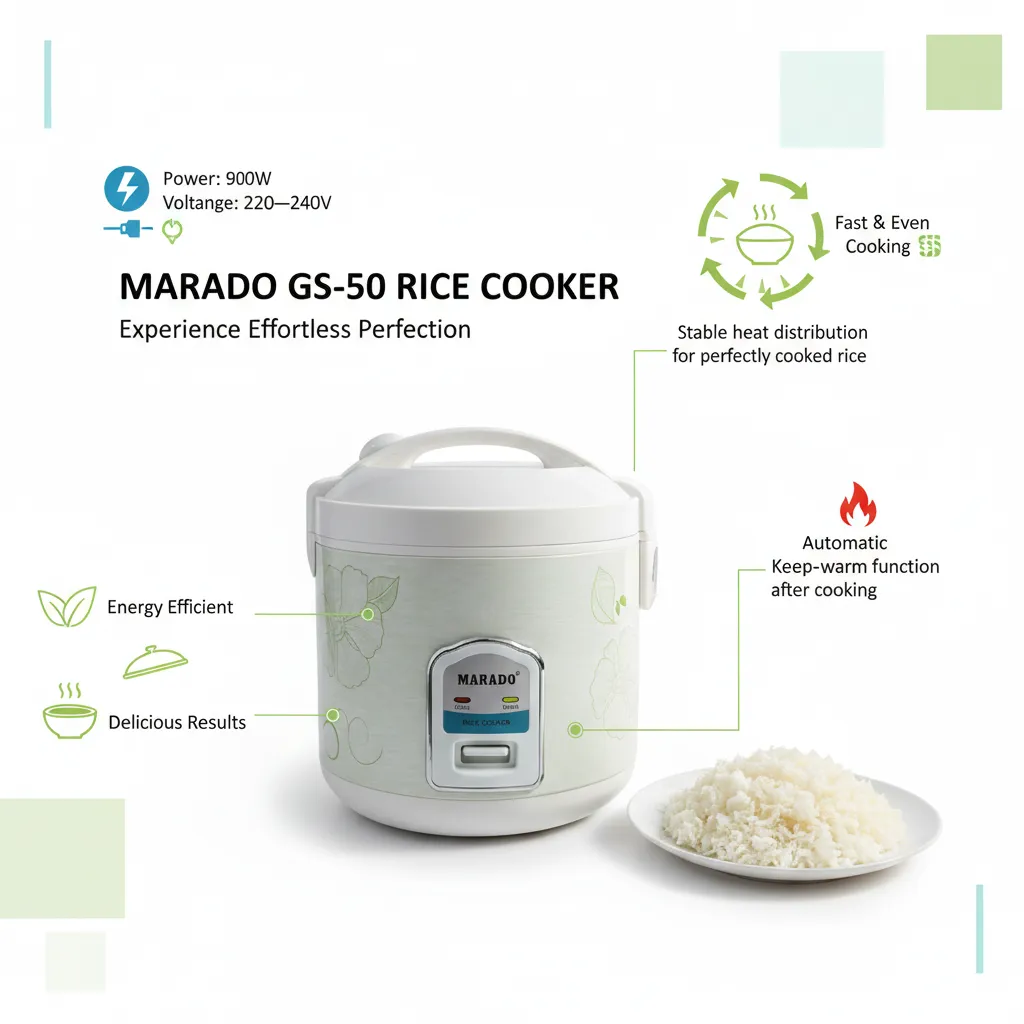 Enjoy perfectly cooked rice every time with the Marado Electric Rice Cooker GS-50. Designed for convenience and everyday use, this rice cooker combines reliable performance, simple operation, and a stylish design that fits perfectly in any kitchen.