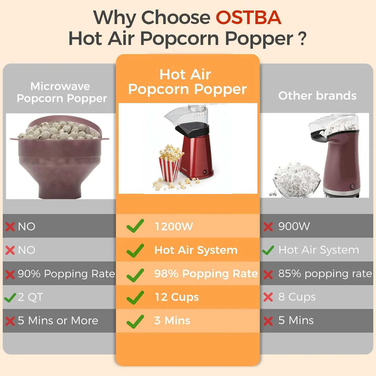 Delivers rapid and efficient heating to pop more kernels in less time. - Hot Air Technology 🌬️