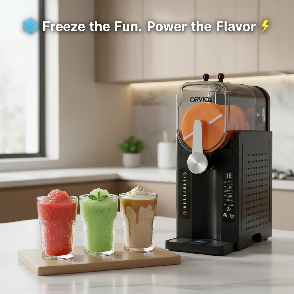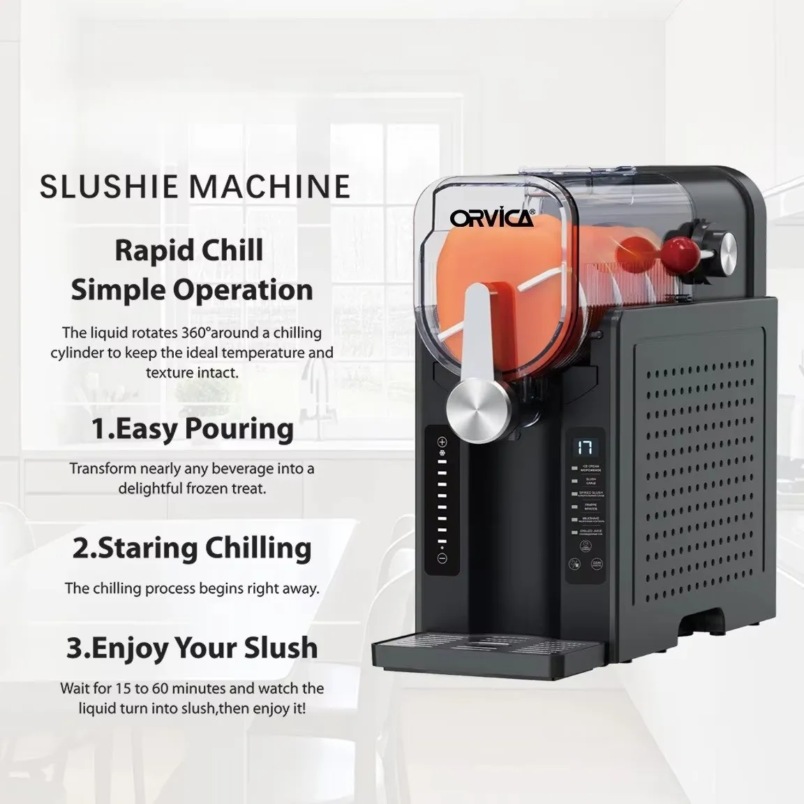 The ORVICA Slushie Machine is a powerful and stylish frozen drink maker designed to transform almost any beverage into a refreshing frozen treat. With rapid chilling technology and an easy-to-use control panel, enjoying perfect slush has never been easier.