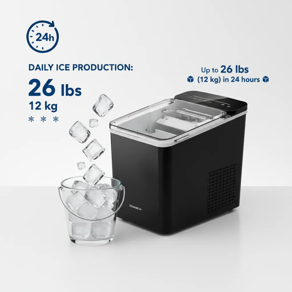 • Daily Ice Production: Up to 26 lbs (12 kg) in 24 hours