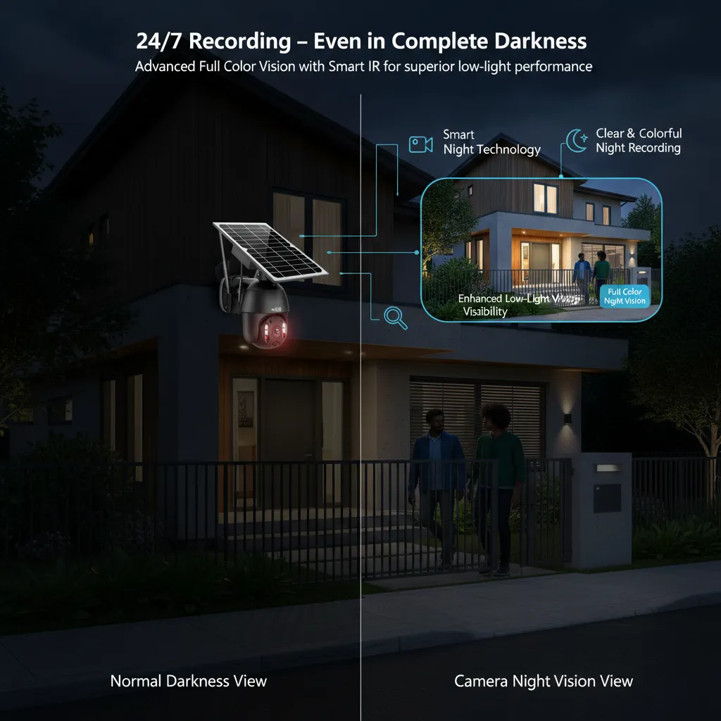 Your Solar Camera 4G keeps recording even in complete darkness.