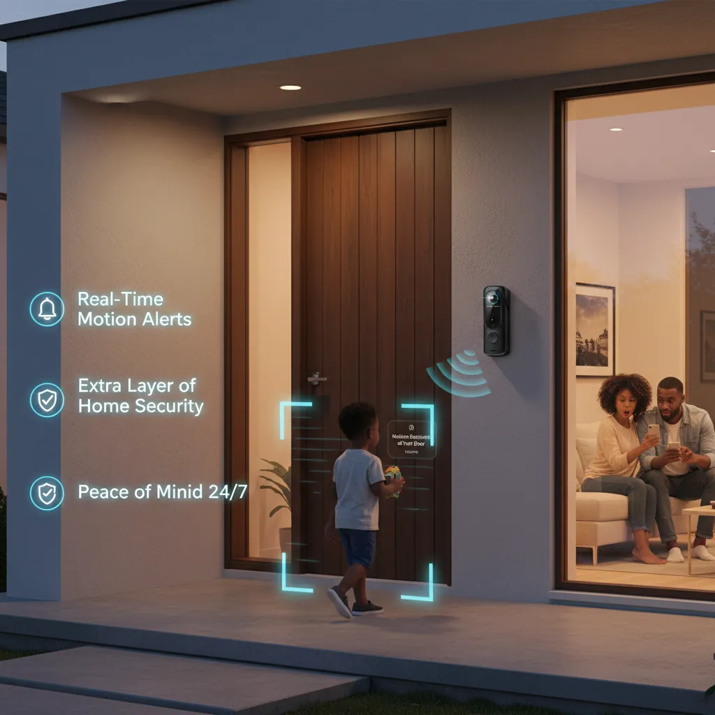 The smart motion sensor alerts you immediately when movement is detected at your door.